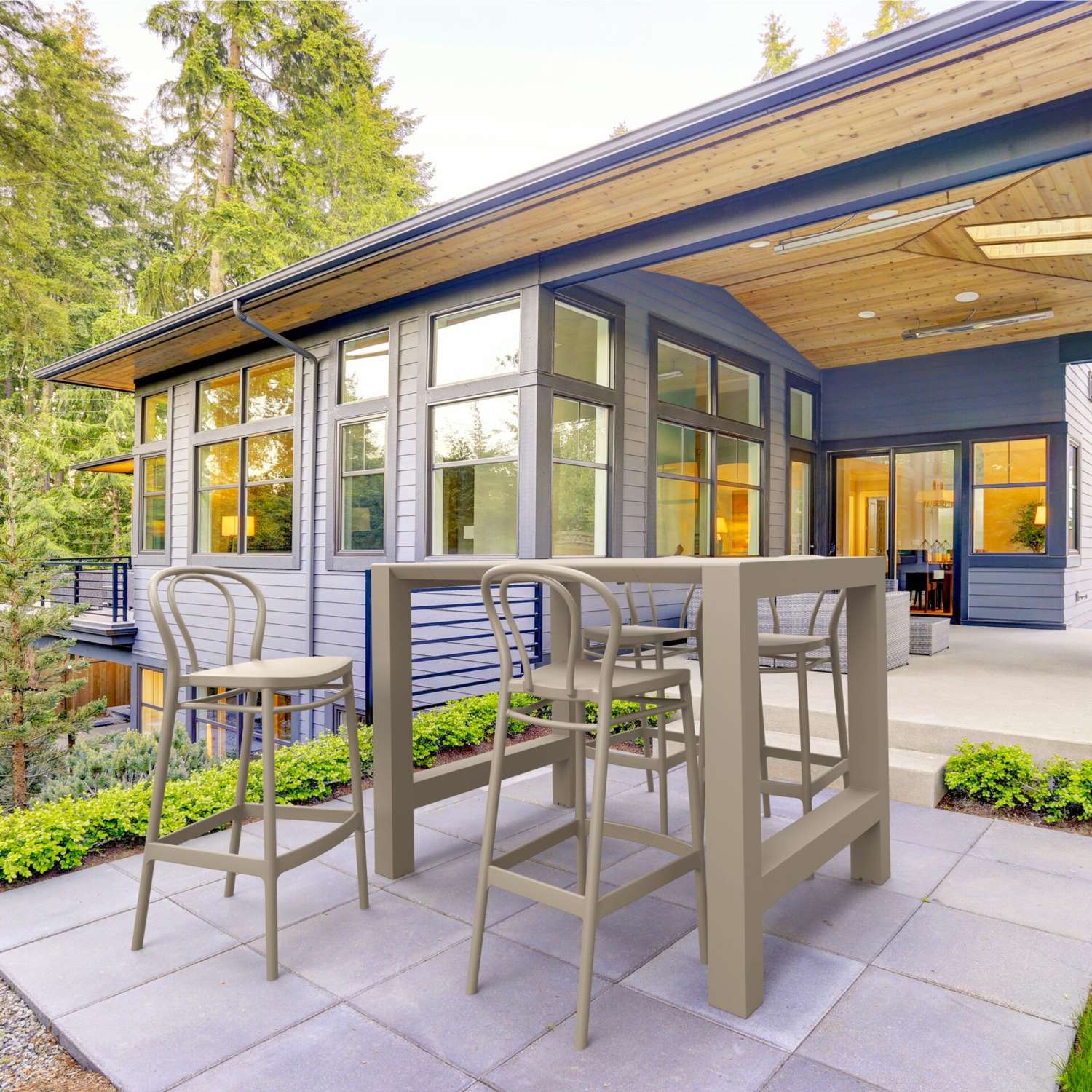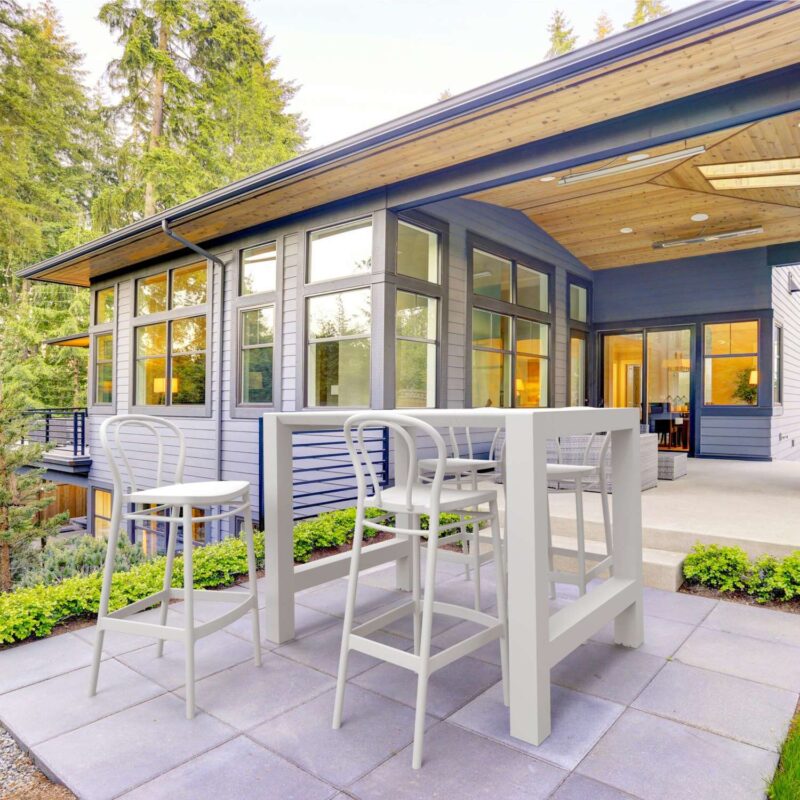 Elevate your outdoor spaces with our 5 Piece Outdoor Bar Table Setting featuring the Vegas Bar Table 100/140 and Victor Barstools – a harmonious blend of European craftsmanship, durability, and contemporary design that promises to redefine al fresco entertaining.