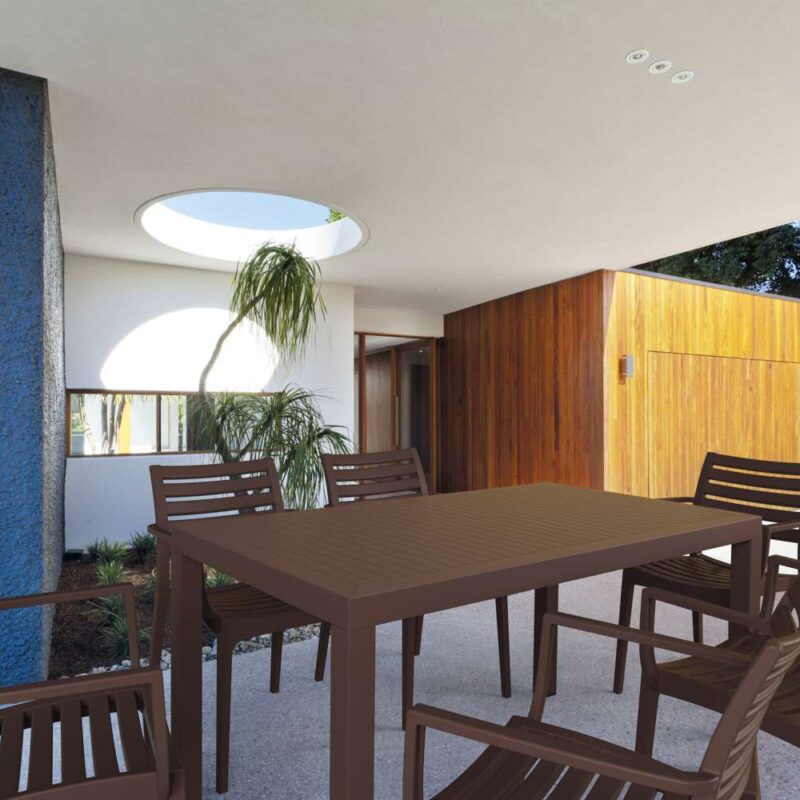 The Ares Table, weighing 23kg, features UV resistance and a 5-yearwarranty, making it a robust centrepiece for both indoor and shaded outdoorcommercial spaces. With customizable colour options and supplied unassembled, itadapts effortlessly to diverse preferences.